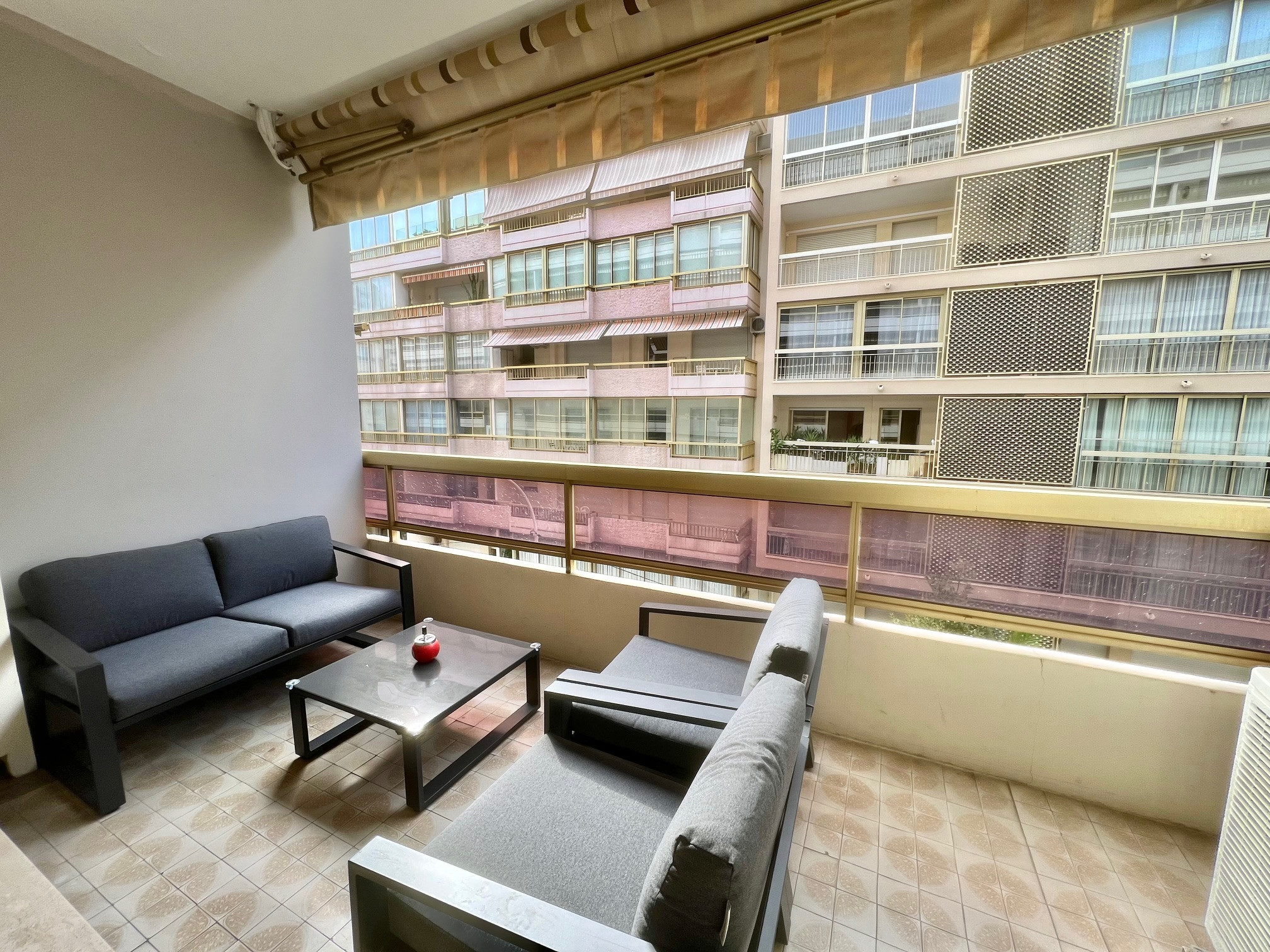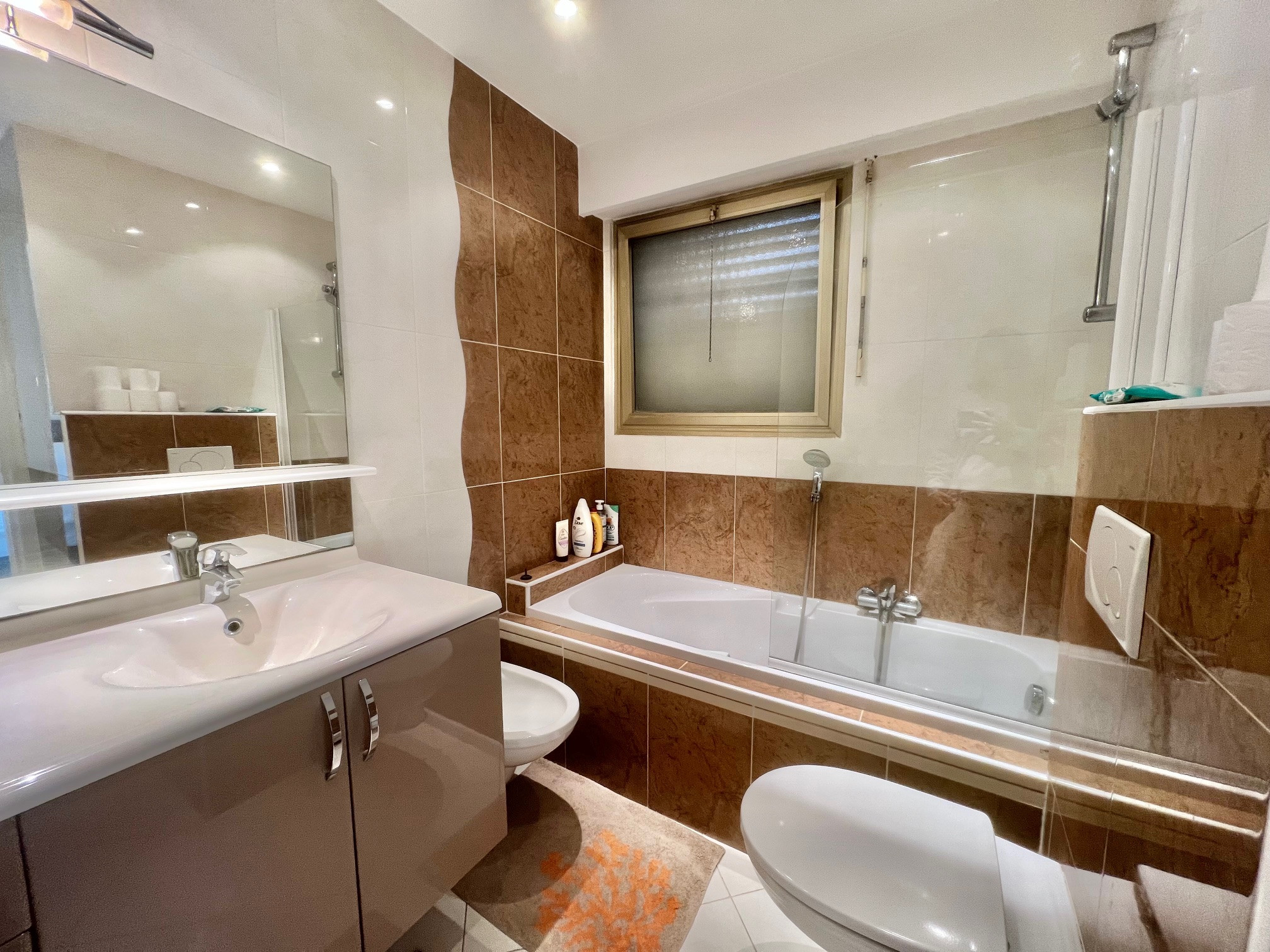 In a secure residence and pleasant residential area 2 rooms apartment in a quiet high floor with elevator, this apartment offers a living room with sofa bed for 2 personns and open kitchen, a bedroom with one double bed.A beautiful terrace of 16m2 with dining area and a sitting area, a beautiful open view and sea view. Capacity 4 people.