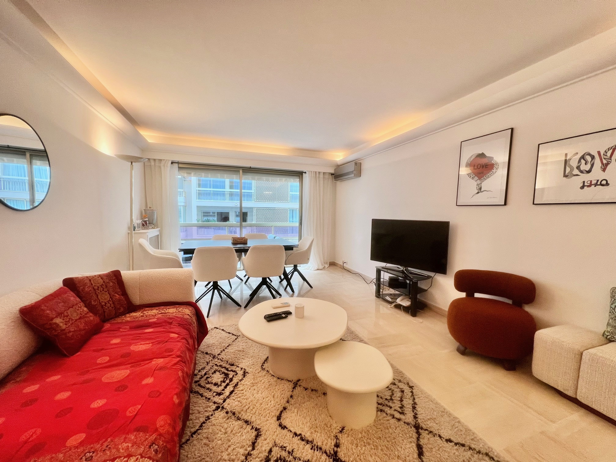 In a secure residence next to the Croisette, this one bedroom apartment offers a living room with lounge area and sofa bed, dining area and open plan kitchen, all leading on a terrace; a bedroom with large bed also leading on the terrace, a bathroom with shower and an independant toilet. This apartment is equiped with AC and wifi.