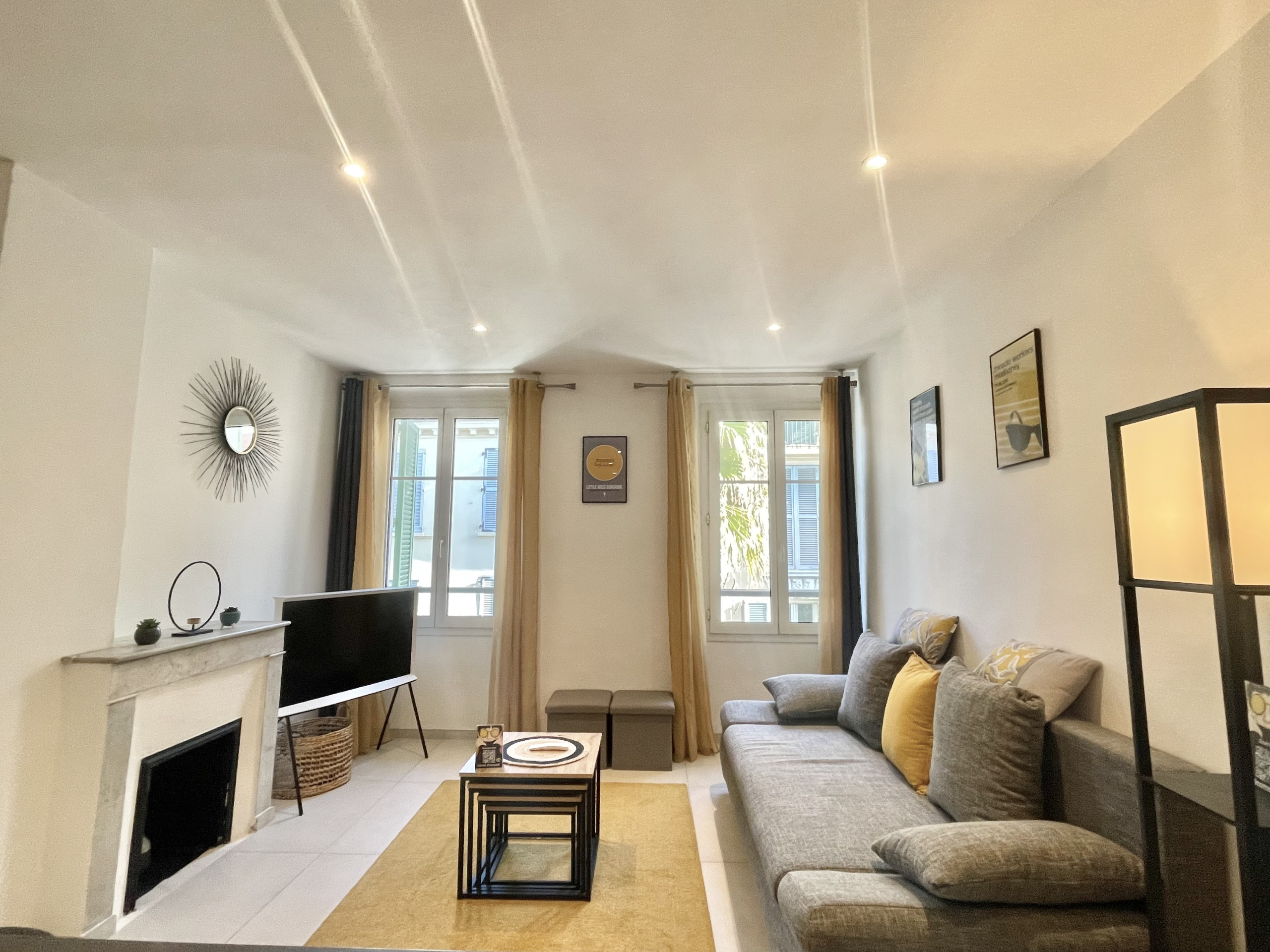 Ideally located just 3 minutes' walk from the Palais des Festivals, this charming 2-room apartment consists of a bright living area with a lounge corner and sofa bed, a fully equipped open-plan kitchen with dining space, a bedroom with a double bed, as well as a bathroom with toilet.