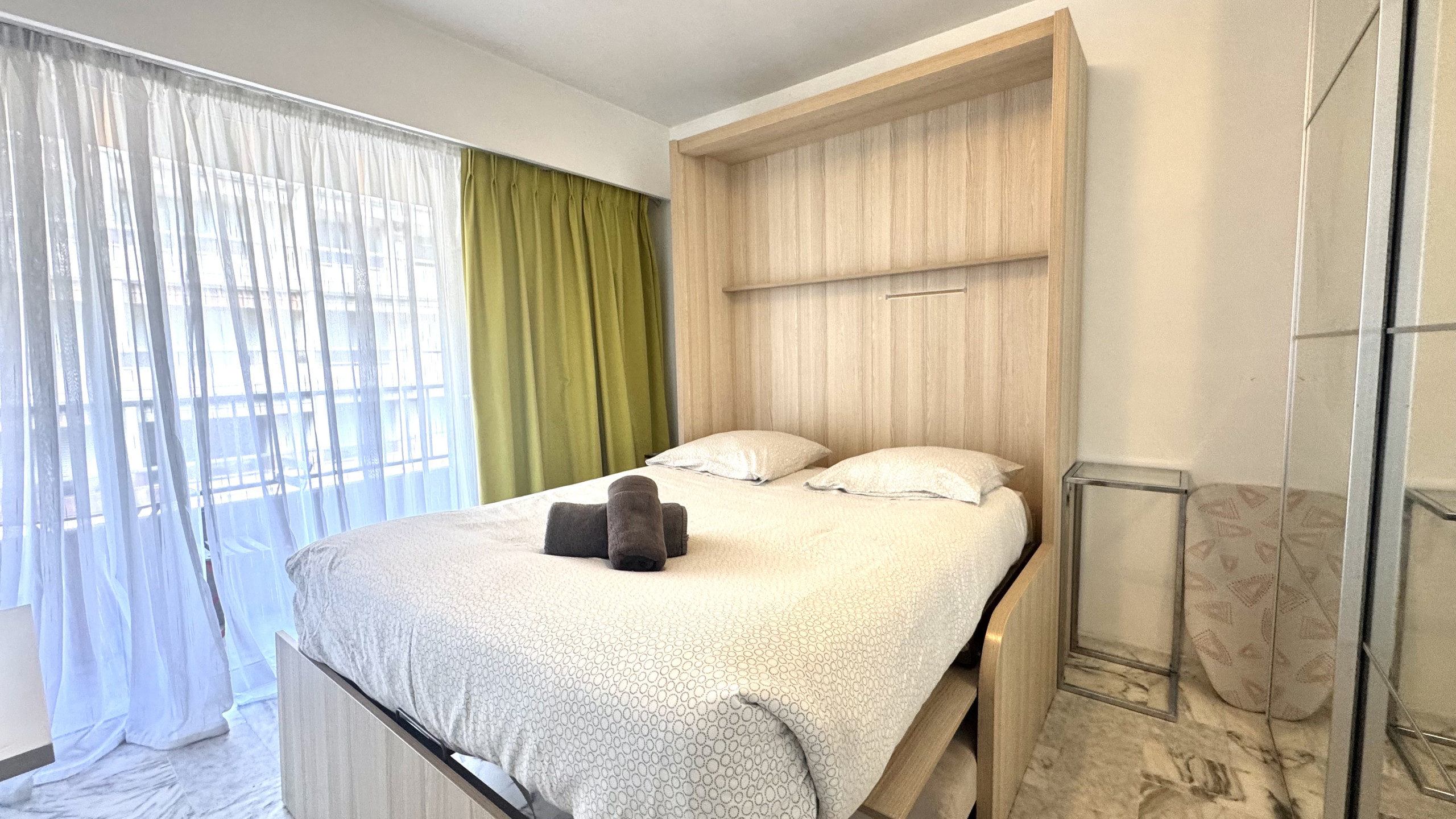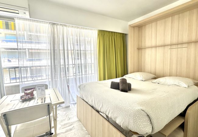 Idéalement situé à 150 mètres de la Croisette et de ses plages,dans un immeuble sécurisé en étage élevé avec ascenseur studio avec balcon.Le studio offre une salle de bain avec wc et machine à laver, un séjour avec un lit escamotable double et une kitchenette,coin repas ,wifi et climatisation.